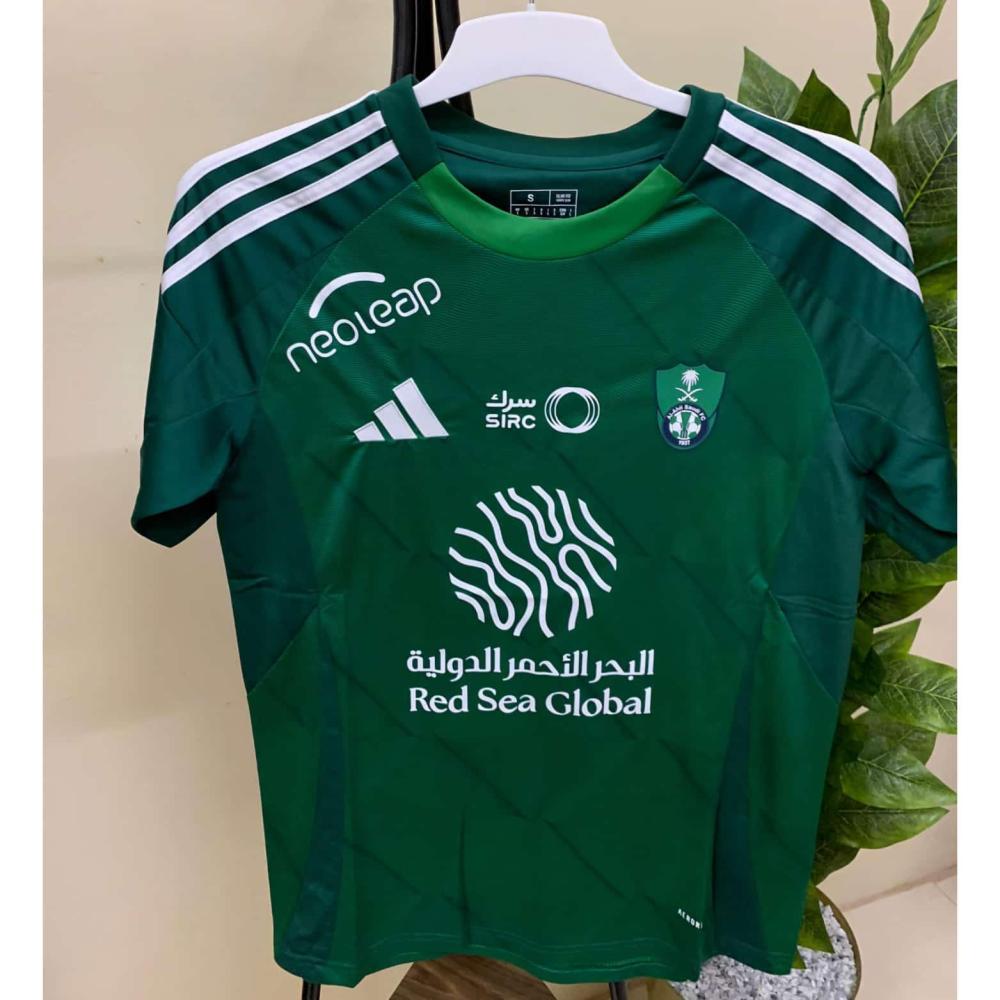 تيشيرت الأهلي الجديد اللون الأخضر تيشرت الأهلي السعودي الاساسي 2025 /2024 جميع المقاسات متوفره للكبار والصغار مع إمكانية طباعة الاسم والرقم خلف التيشيرت يتم طباعة الاسم والرقم عربي أو إنجليزي حسب الطلب أكمام نصفية صديق للبيئة مناسب ومريح للجسم