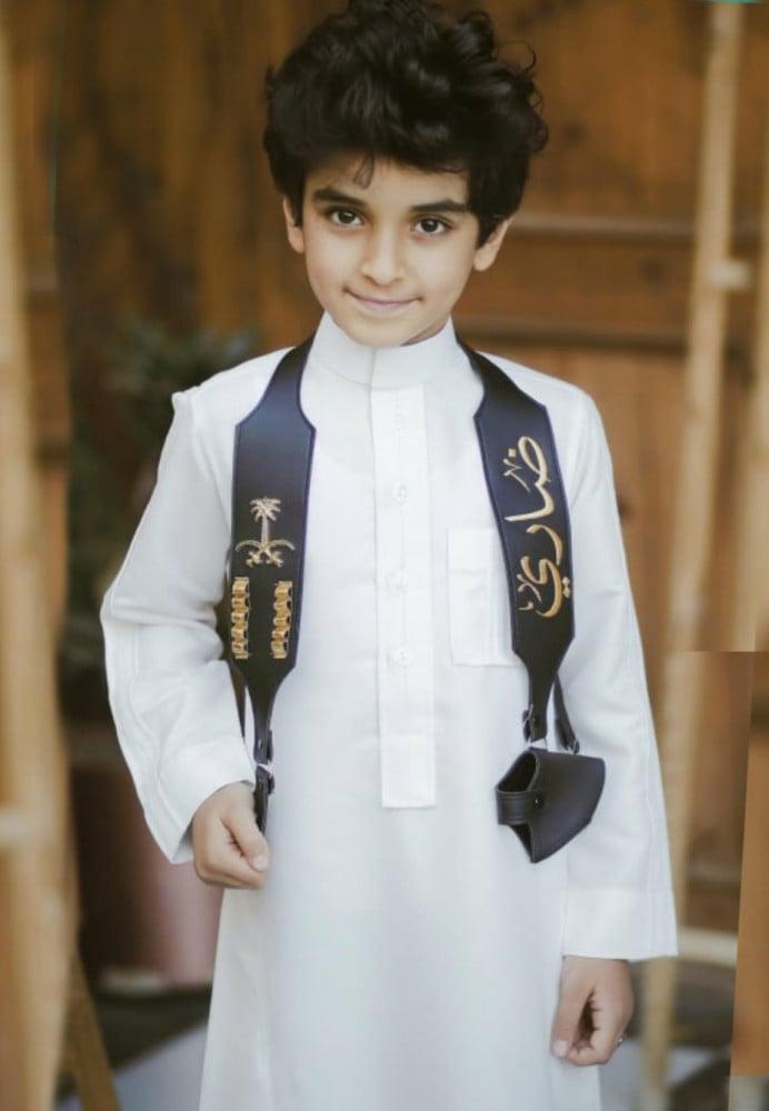 مجند أطفال بالاسم قمة الفخامة بلونه الأسود الفخم مجند اطفال ينلبس فوق الثوب يطرز بالاسم حسب الطلب المقاسات بالعمر متوفر بجميع المقاسات من 6 شهور إلى 14 سنة