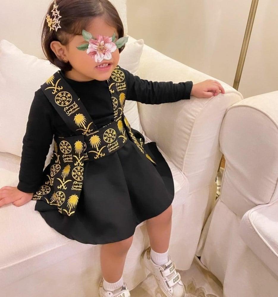 شيال مع تيشرت يوم التأسيس مصنوع من اجود انواع القماش الفاخر لتناسب نعومة طفلتك لتكن أنيقة بطلتها الجميلة موديل قصير لنصف الساق طقم يوم التأسيس شيال مع تيشرت مع التنوره بشعار التأسيس وتطريز سيفين ونخلة القياسات من 6اشهر - 12سنه