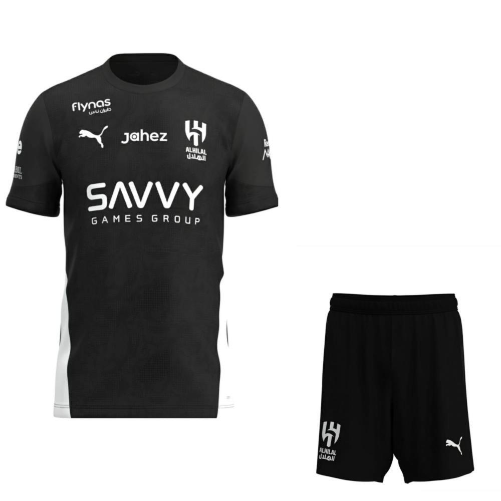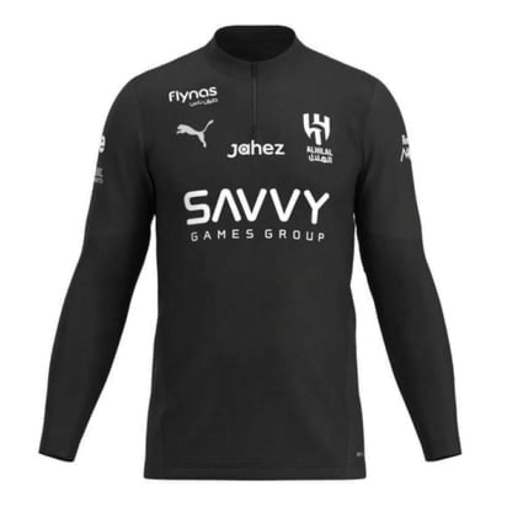 طقم تمارين الهلال الأسود 2026 بشعار الهلال تفصيل المقاس حسب الطلب ولادي شبابي رجالي جامبو مناسب ومريح للجسم صديق للبيئة متوفر كم طويل ومتوفر نص كم ومتوفر بدون أكمام