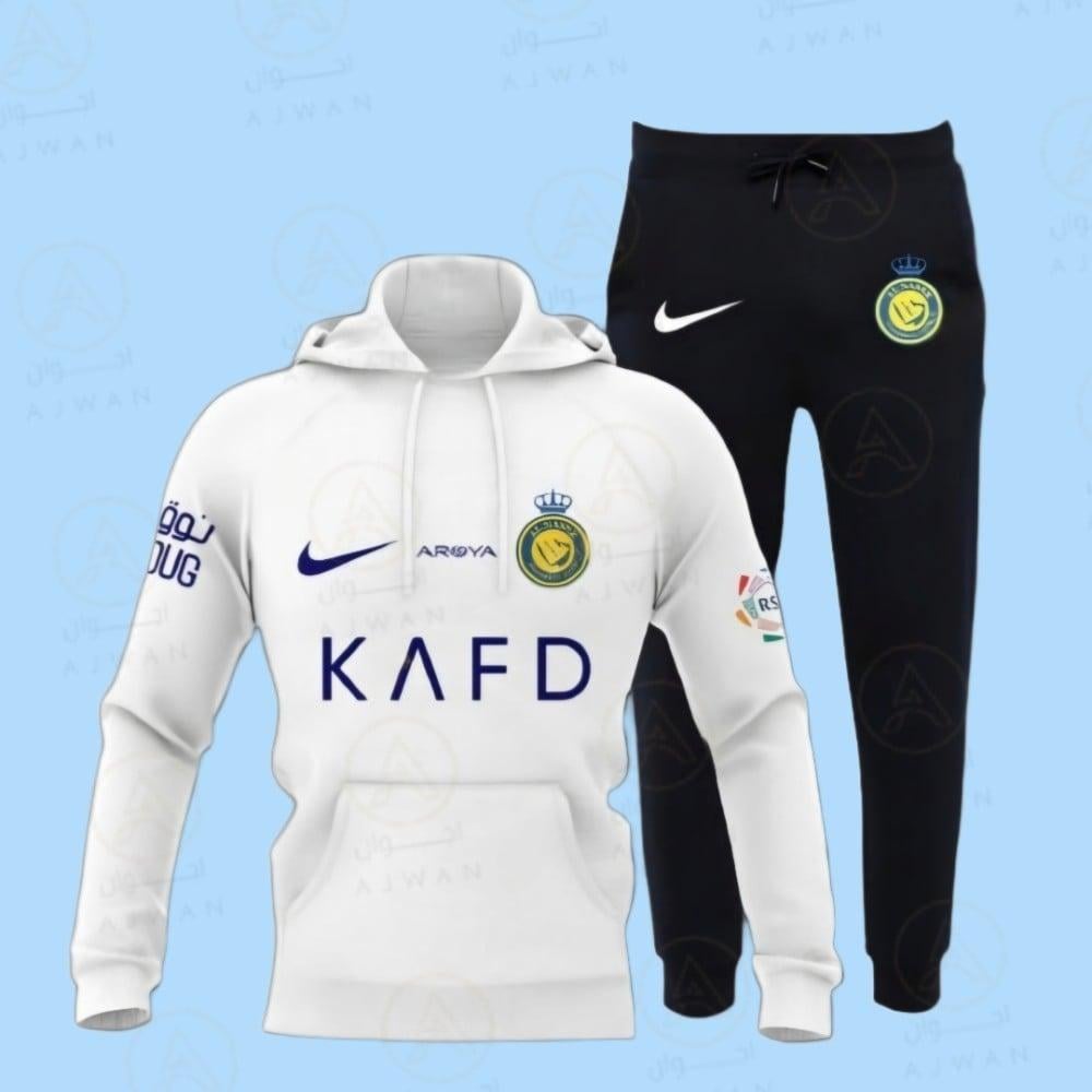 طقم النصر الشتوي بلوفر أبيض مع بنطلون أسود طويل بجميع المقاسات طقم النصر لون أبيض مقاس رجالي ومقاس شبابي