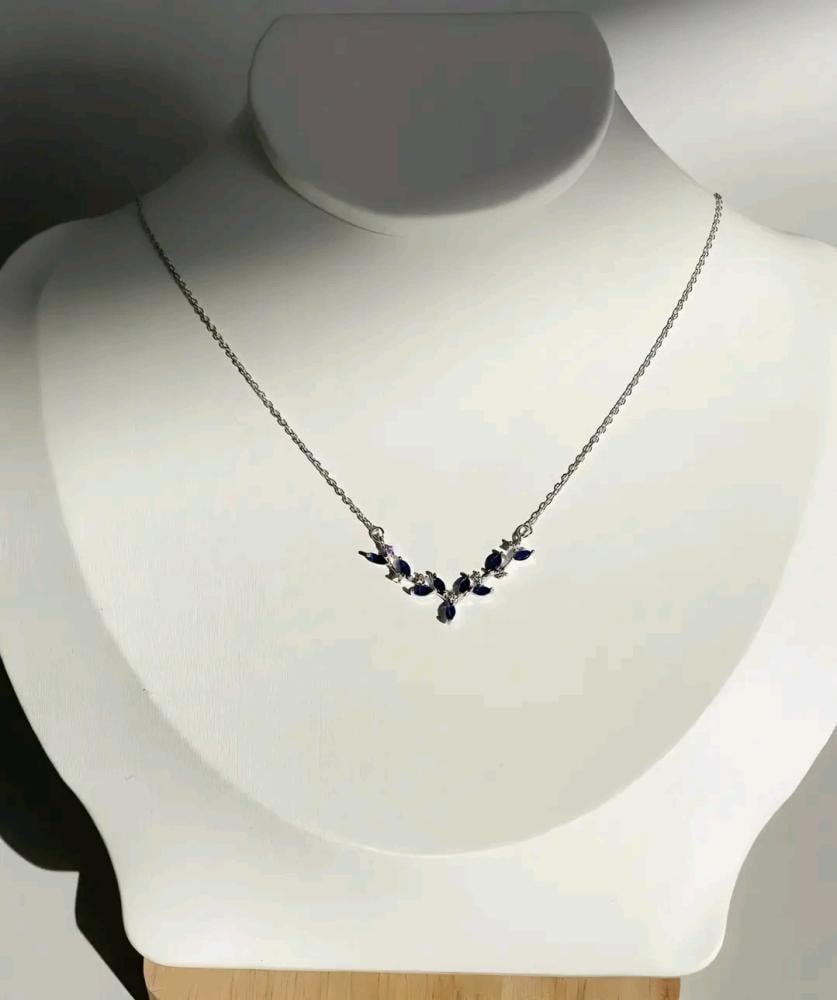 سلسال أنيق زركون انيق ، يتميز بتصميم فريد بكرستال الازرق ، مع نعومة فائقة تجعله مناسبًا للمناسبات واللبس اليومي.